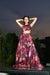This flowy cotton voil skirt and crop top with detailing of lurex. Outfit has an option of two crop tops, The buttoned collared shirt crop top or one shoulder crop top. The outfit comes in 2 colours red and purple.This elegant silhouette will easily take you from a morning mehendi to fun sangeet night with your friends.
