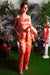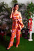 An elegant three-piece co-ord set in satin. Available in two colours green and orange. Consists of A-line pants, a spaghetti bustier with a jacket. The jacket comes with fabric buttons and fits perfectly to the body. As the name suggests, it will definitely make you feel like a boss!